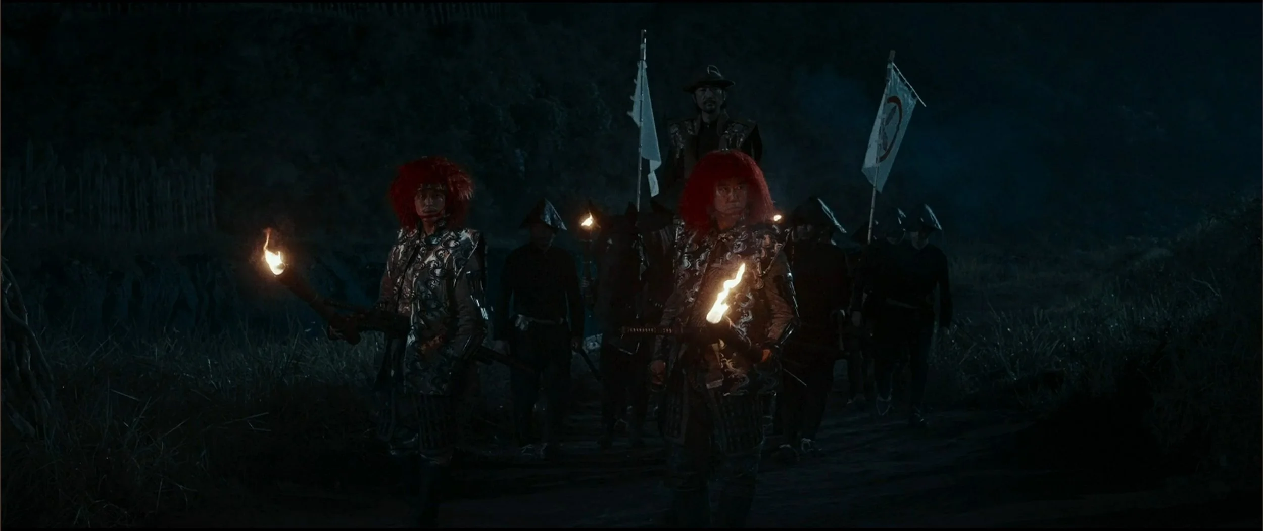 Costumes get to have fun here. Slightly different to many of the period stuff I watch, in part probably because most the stuff I’ve seen is usually more pre-introduction of common placed guns. Still, some of the costumes get the fancy red manes, we get plenty of variation amongst our band of criminals, and some uniforms for various sides in there to keep it from getting to same-same. Of course, the props and accessories are plentiful and although not quite as varied as a “hero” type ensemble flick where almost everyone has their own super unique weapons and styles to go with, it still provides plenty of things to cut or go boom with. The set itself has a few various things to it, although admittedly those who crave a ton of variation might be less thrilled, since the bulk of the movie is the fort defense as opposed to traveling or city watching.