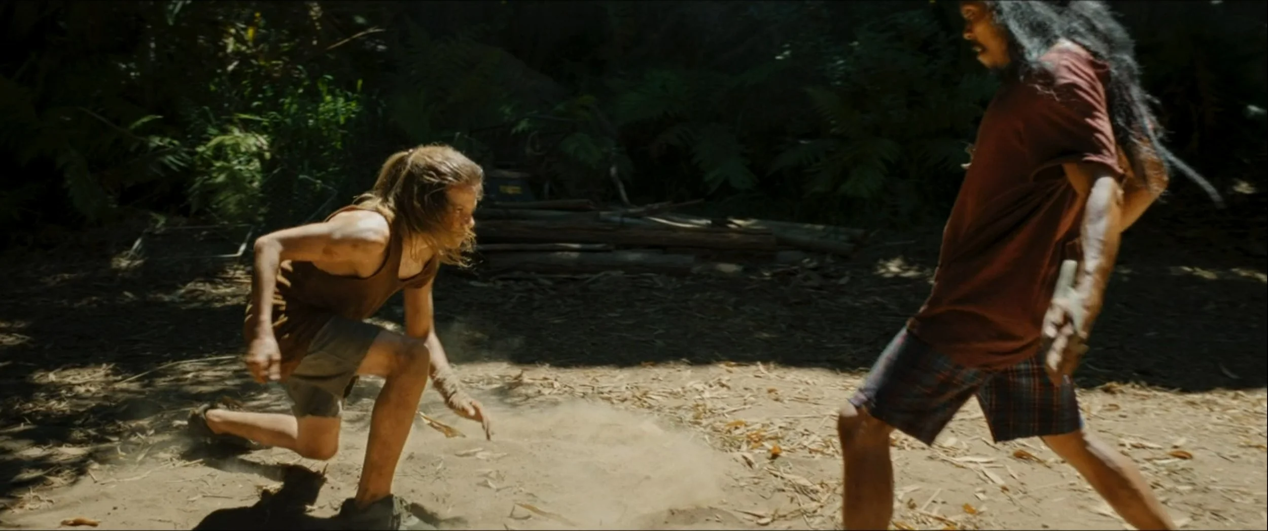 Our story as presented follows a boy who grows to a warrior man honed with a single purpose. What is that purpose? Easy - to kill the people responsible for killing his family. To do this he trains with a fighter in the jungle known as the Shaman from his time as a wee lad (when his family is killed) right on up to when he’s a strapping lean and tall clown capable of floating kids in a King town (okay, that last part is embellished for the sake of referencing Stephen King’s It and the fact it’s the same actor, but beyond that the plot part stands). We get some history about how he’s still attached to his sister, and how he sometimes sees her even though she’s not there. We also get some stuff about how he is both mute and deaf, meaning he chose his internal voice from a video game they used to play and he has to read lips. This will come into play later -although mostly for comedy effect - as he embarks on his quest for revenge when one fateful day in the city the perfect chance arises and he leaves his master to achieve his wanted vengeance.